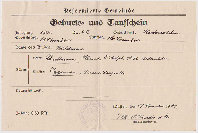 Nro. 36 in Unterwüsten ehelich nachgelassene Tochter.