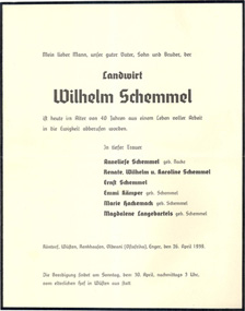 Wilhelm August Ludwig Waldemar Schemmel * 30. Januar 1899 † 26. April 1939