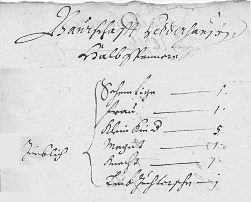 Ehefrau, 5 Klein Kinder, 1 Maget, 1 Knecht und 1