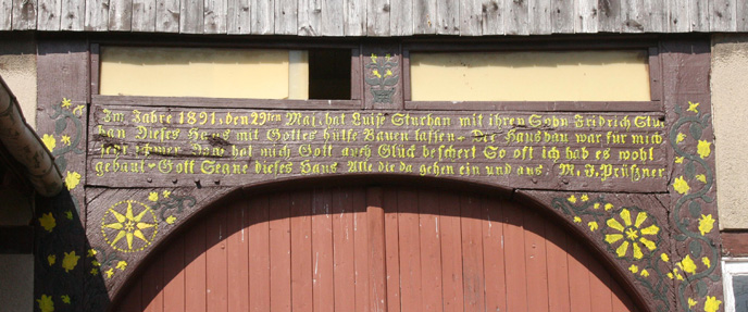 dieses Haus Alle die da gehen ein und aus. M.J. Prüßner. |