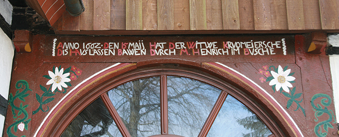 des Krutmeierschen Fachwerkhauses auf der Krutheide. |