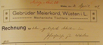 Tischlerei Gebrüder Meierkord - Unterwüsten Nr. 68 Geschichte der Tischlerei und der Familie