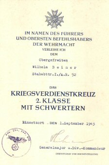 verliehen. Die Verleihung des KV2 mit Schwertern
