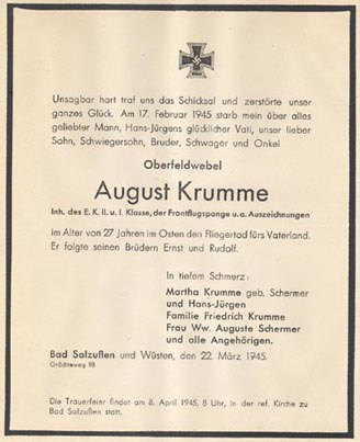 27. September 1917 als Sohn des Friedrich Wilhelm Hermann Krumme, Hofbesitzer von