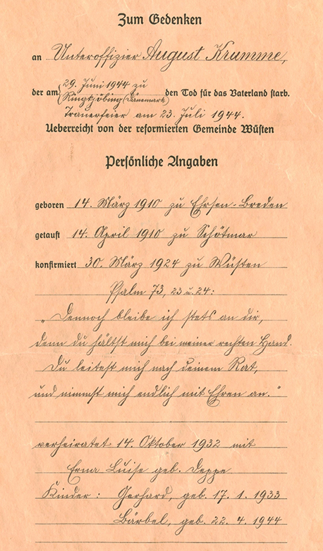 wurde August Krumme im Februar 1940 zur Wehrmacht