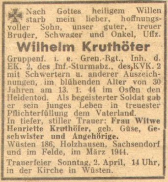 Juli 1913 als Sohn des Friedrich Wilhelm August Kruthöfer, Kolon in