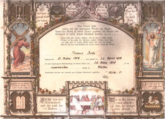 Konfirmationsschein von Robert Bobe vom 28. März 1920.