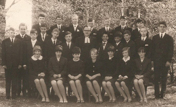 Konfirmation am 5. März 1967 mit Pastor Rosenhäger. |