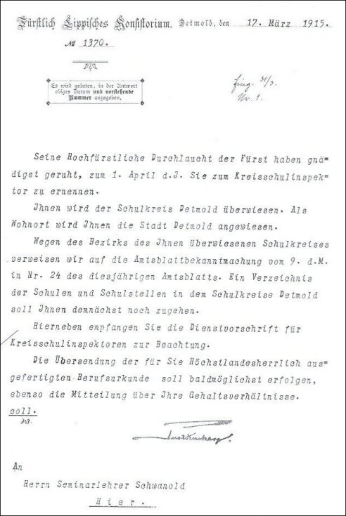 Detmold berufen. Diese neue Aufgabe war sicher nicht