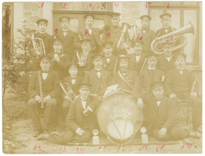 Aufschrift auf der großen Pauke "Krieger-Kapelle Wüsten